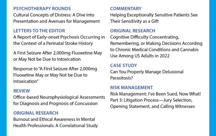 Innov Clin Neurosci. 2025;22(7–9):28–31. by Edmund G. Howe, MD, JD Dr. Howe is with Uniformed Services University of the Health Sciences in Bethesda, Maryland. FUNDING: No funding was provided for this article. DISCLOSURES: The author [...]